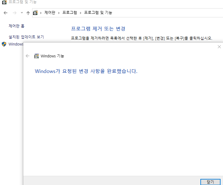 'windows 가 요청된 변경사항을 완료했습니다'라는 문구가 뜨게 된다.