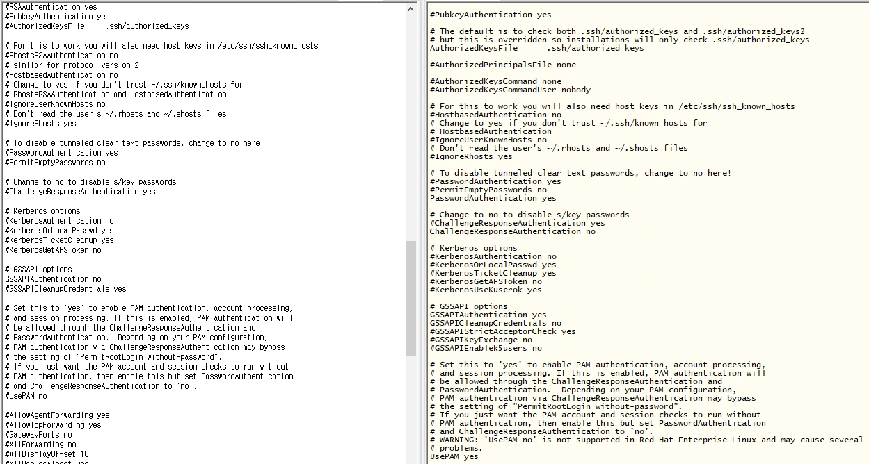permitRootLogin : AIX,Linux 모두 다 no 가 되어야 하며