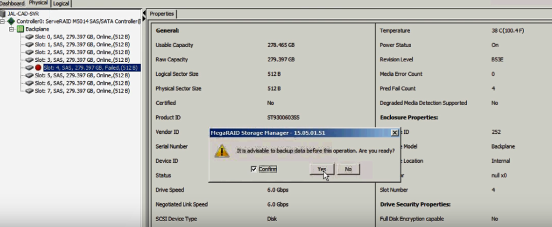 Controller id : 0 PD predictive failure -:-:4 (슬롯 4를 뜻하며, 이건 디스크가 미리 failed될 것을 의미함)
