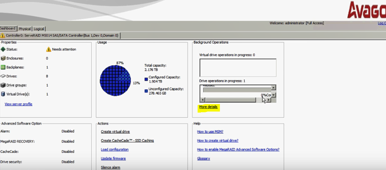 (5)dashboard > more details 보면 리빌딩 진행상태가 나타나며, 몇시간 걸리는지 확인됨.