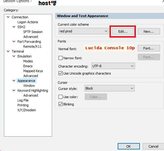 해당 호스트끼리 개별적으로 바꾸려면 session option으로 가서 바꾸고