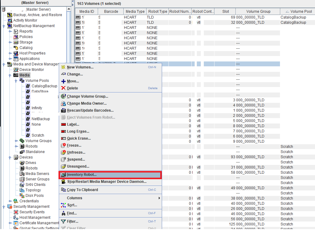 임의의 media(=tape)를 클릭 후 inventory Robot을 클릭한다.