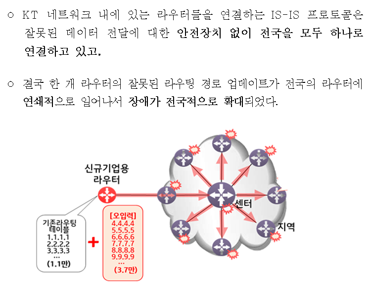 국내 ISP 업체 중 하나인 KT에서 당시, 네트워크 장애로 약 90분간 장애가 발생한 적이 있었으며, 아직도 기억이 난다.