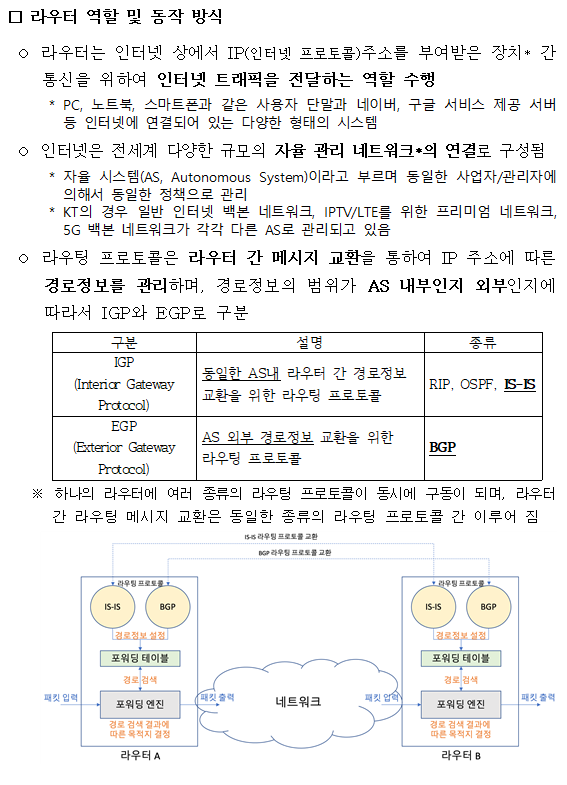 *IS-IS : 내부 라우터 간 경로 정보를 주고받는 프로토콜, 통상 1만개 이하의 경로정보를 교환