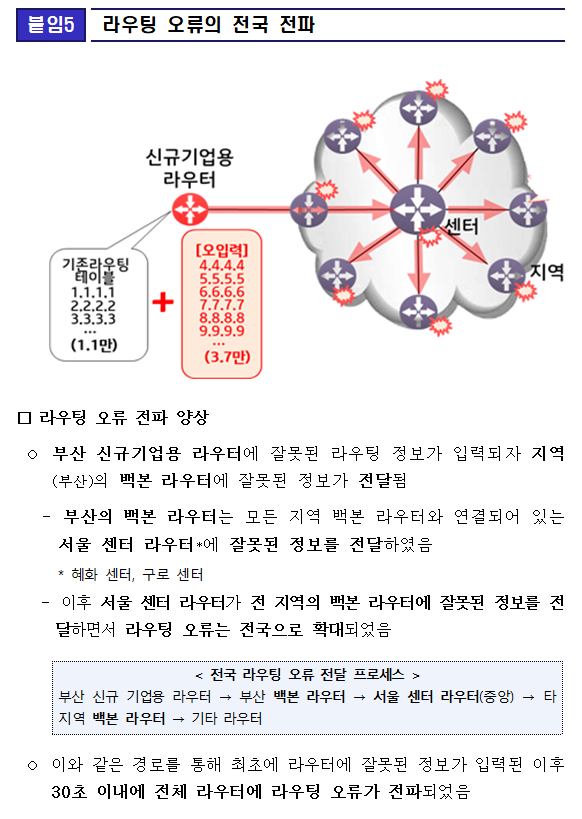 =>IS-IS 프로토콜에 수십만개의 BGP 프로토콜 정보가 잘못 전송되어, 라우팅 경로에 오류가 발생함