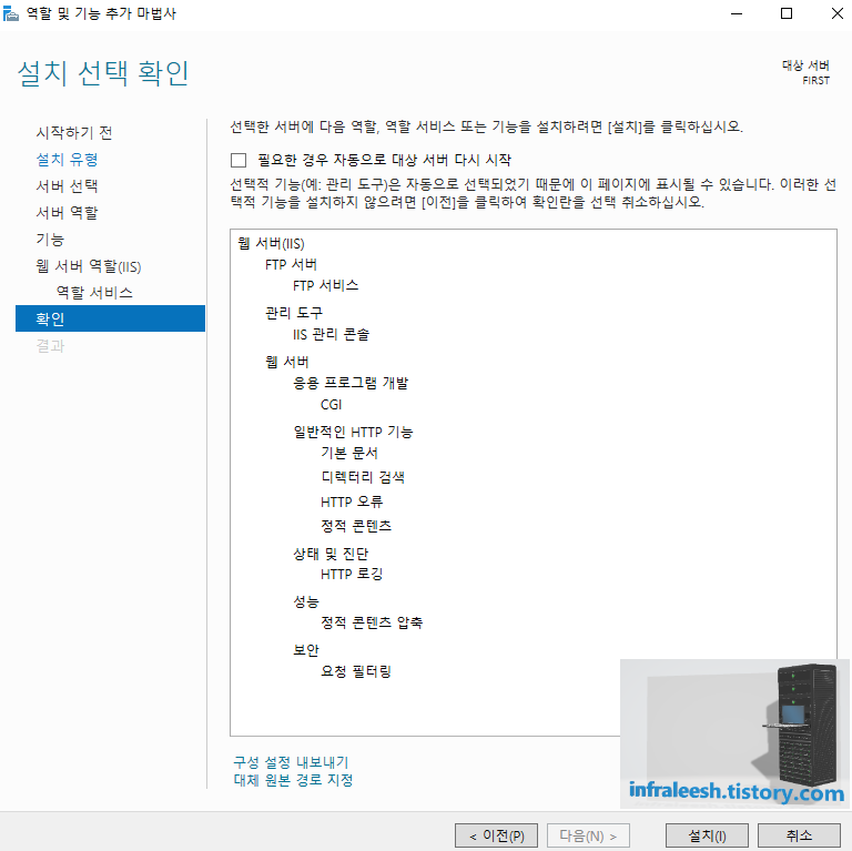 4.서버 역할 >웹 서버(IIS) 체크 후 [기능추가]체크