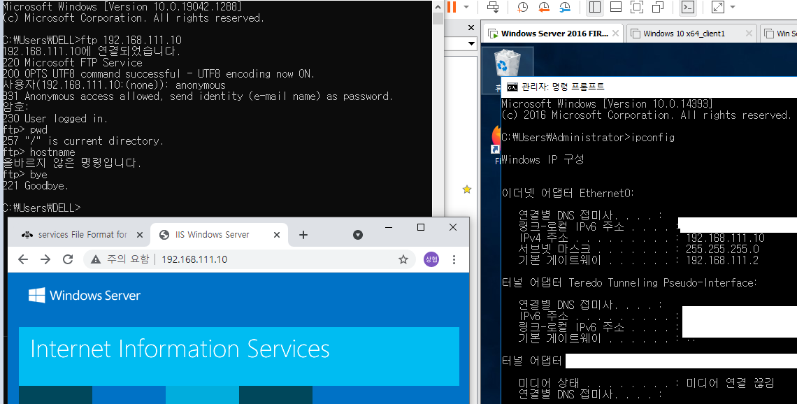 최종적으로 외부PC에서 FTP와 IIS 가 접속됨을 확인한 화면이다.