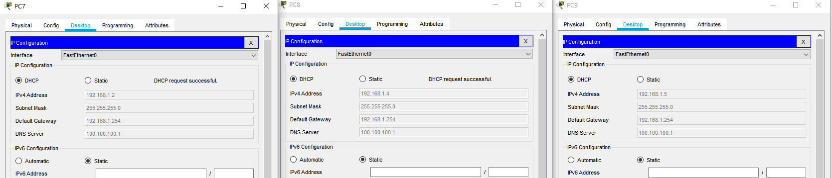 PC 더블클릭>desktop>>ip configuration 클릭 [static->dhcp 로 클릭하면 할당됨]