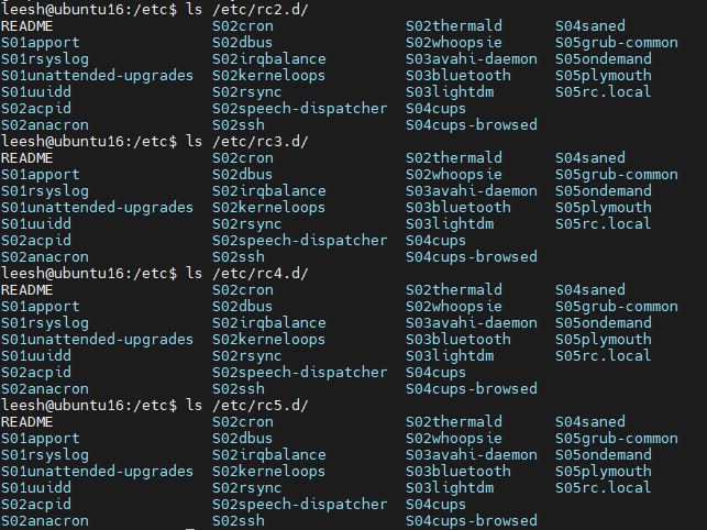 해당 경로/etc/rc2.d = /etc/rc3.d = /etc/rc4.d = /etc/rc5.d 는 위의 runlevel 2 =3=4=5 다 동일함.