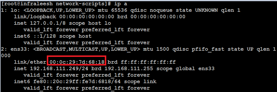 3.MAC adress 파악 후 vi editor로 수정해서 입력 또는 확인