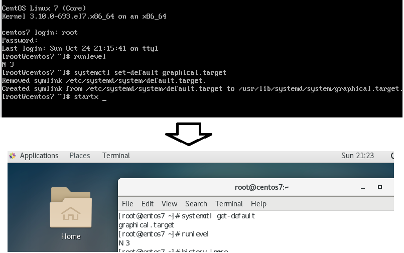 조건 : 원래 minimal이 아닌 Server with GUI로 설치되어있을 경우에는 rebooting 없이 바로 GUI로 변경 가능하다