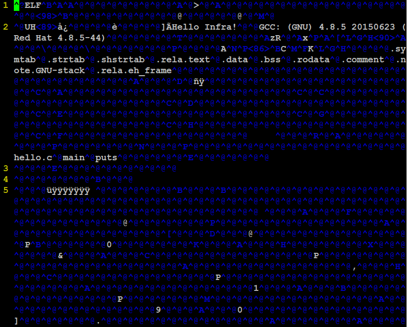 [root@centos7 gcc_test]# cat hello.o |wc -l