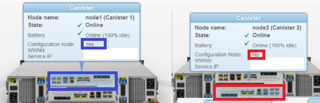 스토리지 내부에 스토리지의 구성정보를 갖고 있는 node canister(=controller) 가 2개로 이중화되어있다.