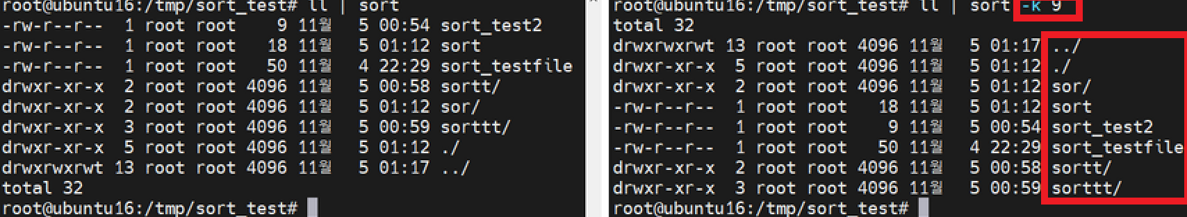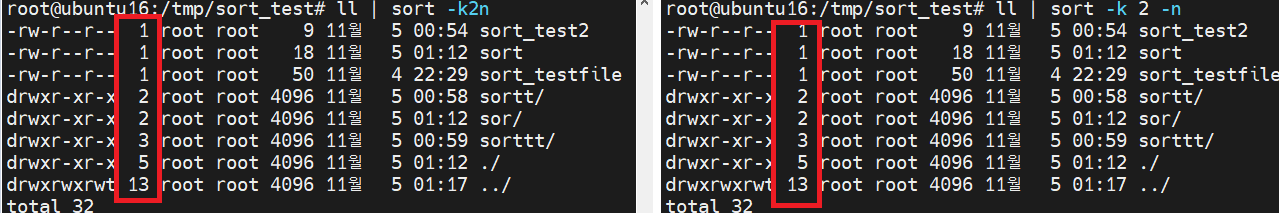 그림 2 | ll | sort -k2n ll | sort -k 2 -n |
