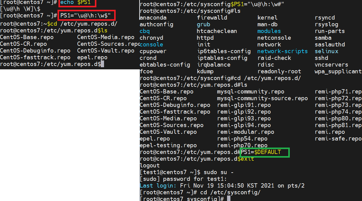 마지막으로 다시 원래 세팅이었던 디폴트 세팅으로 변경해보았다. PS1=$DEFAULT