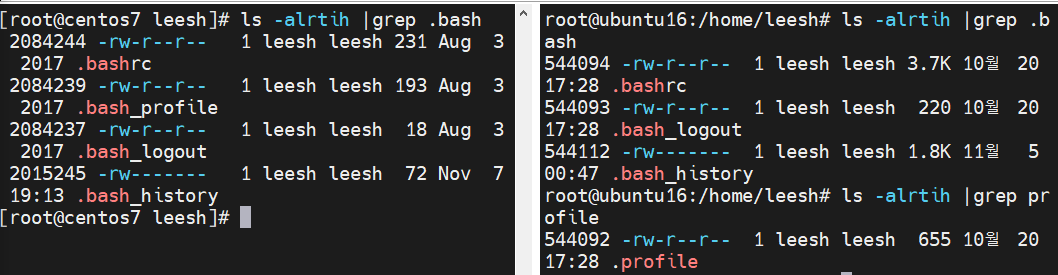 | CentOS7.4 /etc/bashrc 파일 내용 | ubuntu 16.04 의 /etc/bash.bashrc 파일 내용 |