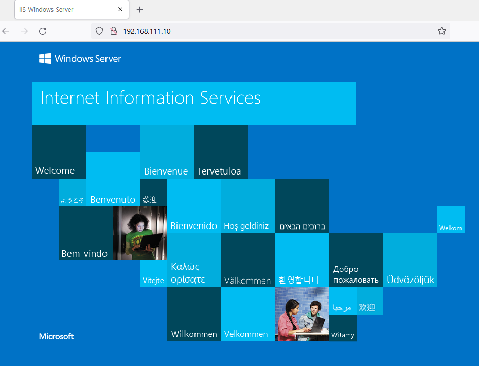 따로 웹페이지 파일을 설정하지 않았을 때 다음과 같이 IIS Windows server로 뜬다.
