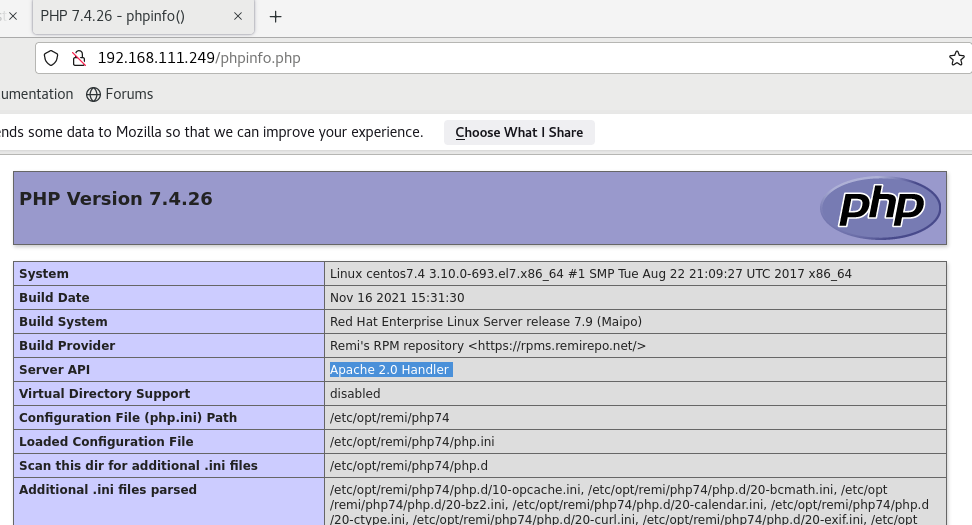 http://ip주소/phpinfo.php 후 해당 서버의 IP를 입력해서 확인하기