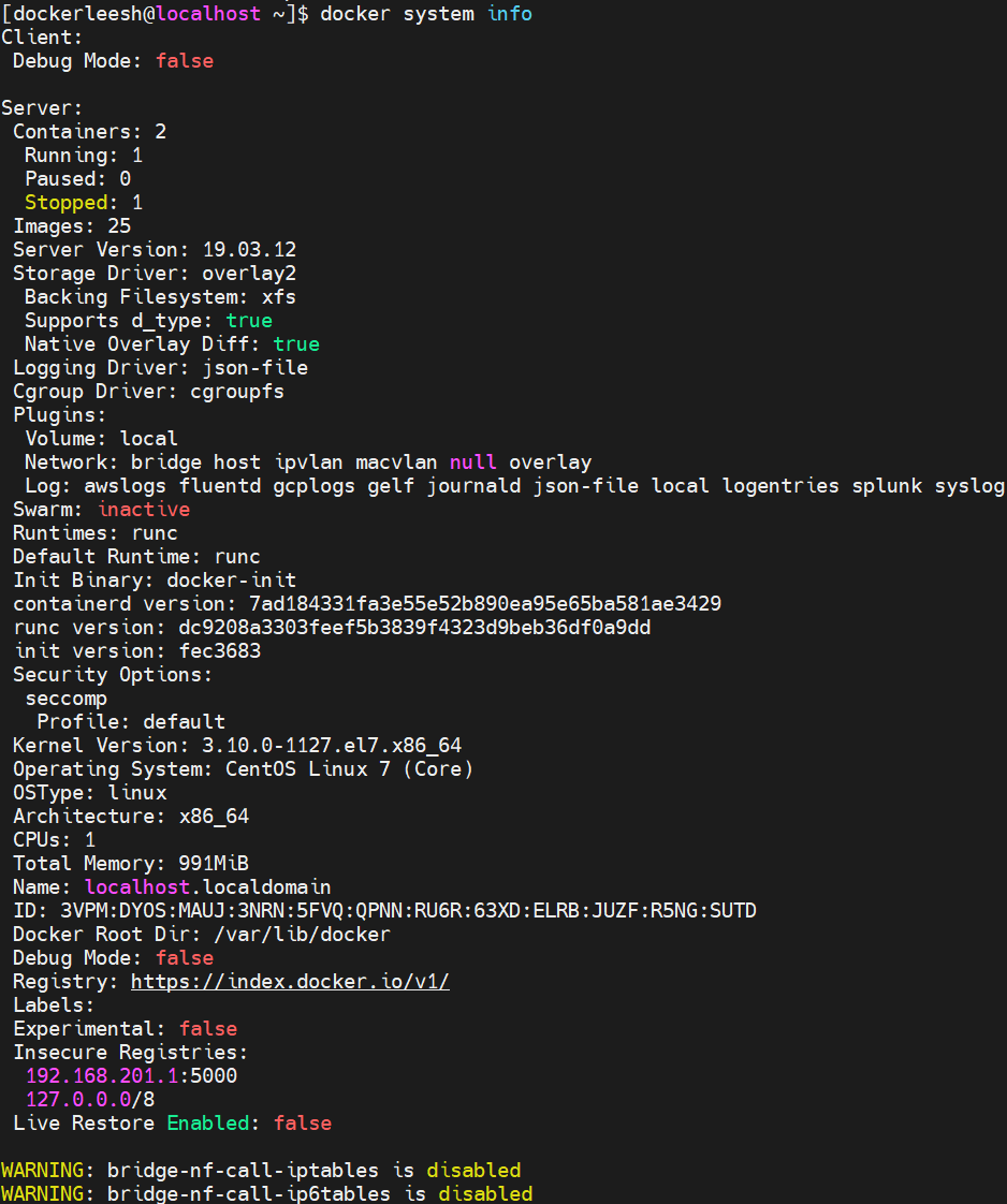 -v 옵션은 image , container , volume 각각의 개별적인 정보들을 상세히 확인할 수 있는 옵션이다.